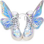Beautiful and sparkly, just like you! Fly like a butterfly and carry a rainbow wherever you go! Ankle boots that lace up with detachable butterfly wings! Wear them at day time and see beautiful colours reflected. How cool are these?